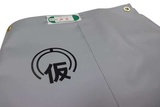 仮設工業会認定品。しなやかな風合いの塩ビコーティング生地。防音性能が高く、メンテナンスしやすい塩ビ仕様です。解体工事、建設工事などの壁面養生に。