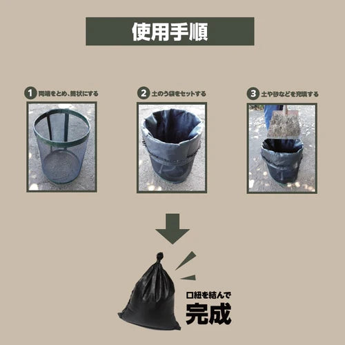 - 袋内に土やゴミを過剰に充填すると、面ファスナーが外れたり破損する恐れがあります。