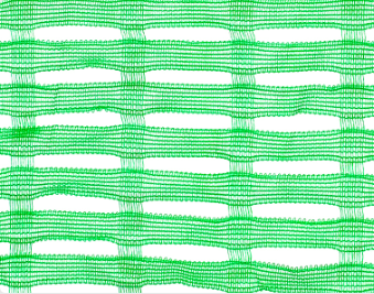 風の影響を受けにくい構造の網。耐久性に優れ、現場用の仮設フェンスや危険区域等の境界、スキーネットとしての使用におすすめのフェンスネット。網の目合いに沿って互い違いにパイプ(最大直径48.6mm)をネットに通すだけで、固定せず簡単に設置できます。さらに上部のロープをパイプに絡めればネットがずり落ちにくくなります。スキー場のフェンスなどにも使用されています。
