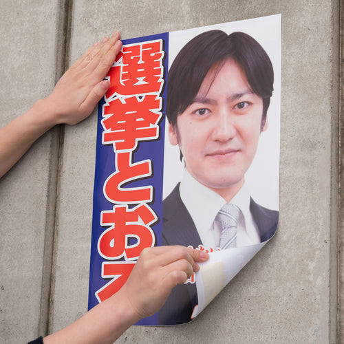 - 雨風に強く凹凸面にもよくつくため屋外掲示用にできます。