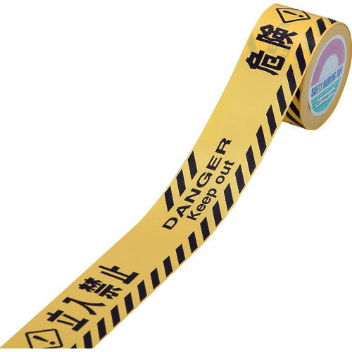- 日本語と英語の2ヶ国語表記で立入制限箇所を表示する、非粘着タイプの標識テープです。