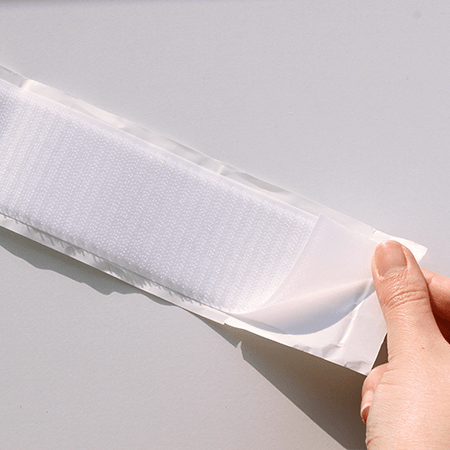 裏面のリケイ紙を剥がして、糊で接着するだけで簡単に面ファスナーが接着できるAKテープ。カラー、サイズ共に豊富な種類があり、用途に応じて選択可能。
