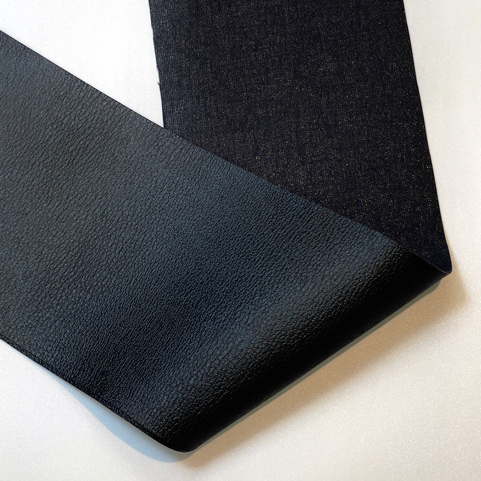 表面に細かな縮みジワが施された、味わい深い塩化ビニールレザーです。裏面にはレーヨンの平織りを使用し、扱いやすさとしなやかさを兼ね備えています。